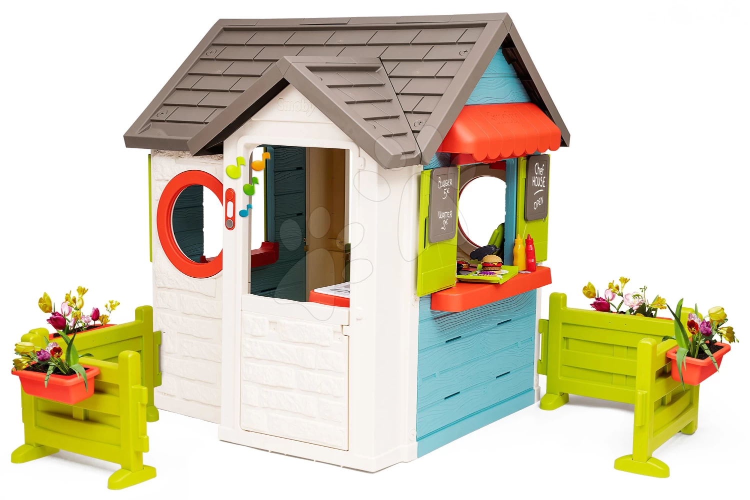 Spielhaus Pretty Sunny Flowers House Smoby Mit Glocke, Küche Und Garten Mit Stühlen