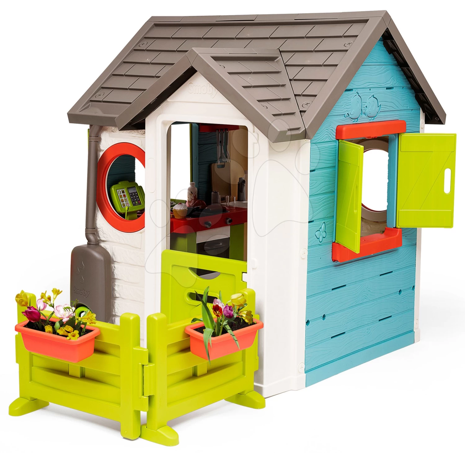 Spielhaus Pretty Sunny Flowers House Smoby Mit Glocke, Küche Und Garten Mit Stühlen