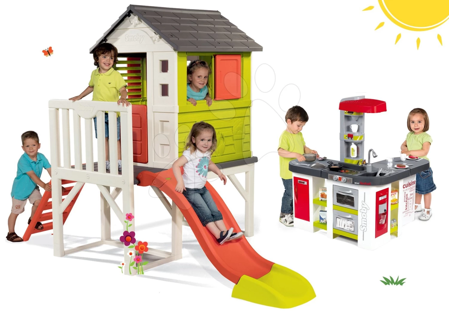 Set Häuschen Der Freunde Von Smoby Mit Vorgarten Und Rutsche Funny Toboggan 2 Meter