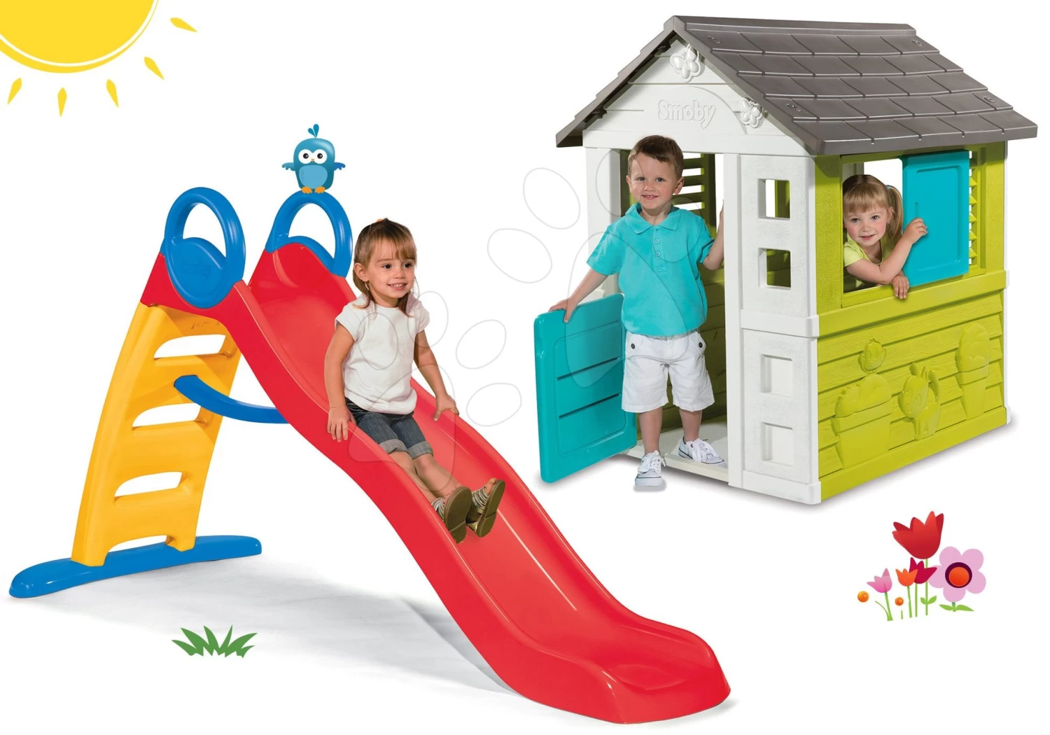 Set Häuschen Der Freunde Von Smoby Mit Vorgarten Und Rutsche Funny Toboggan 2 Meter