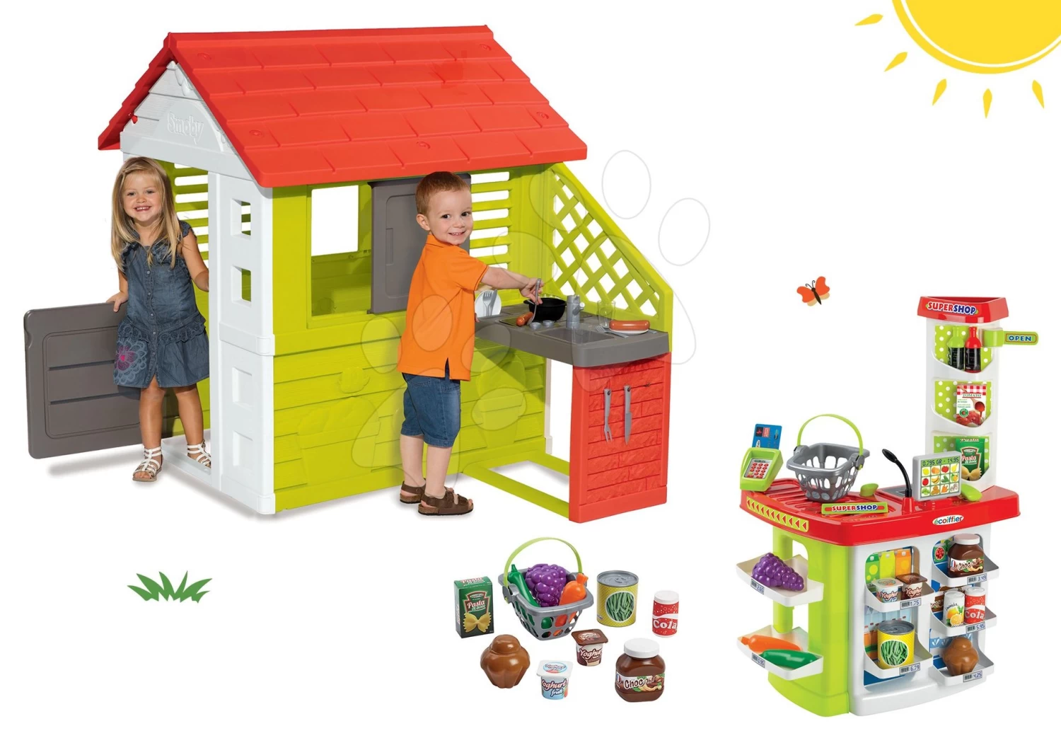 Set Häuschen Gärtner Neo Floralie Smoby Mit Küche Und Wagen Mit Eis Und Burgern