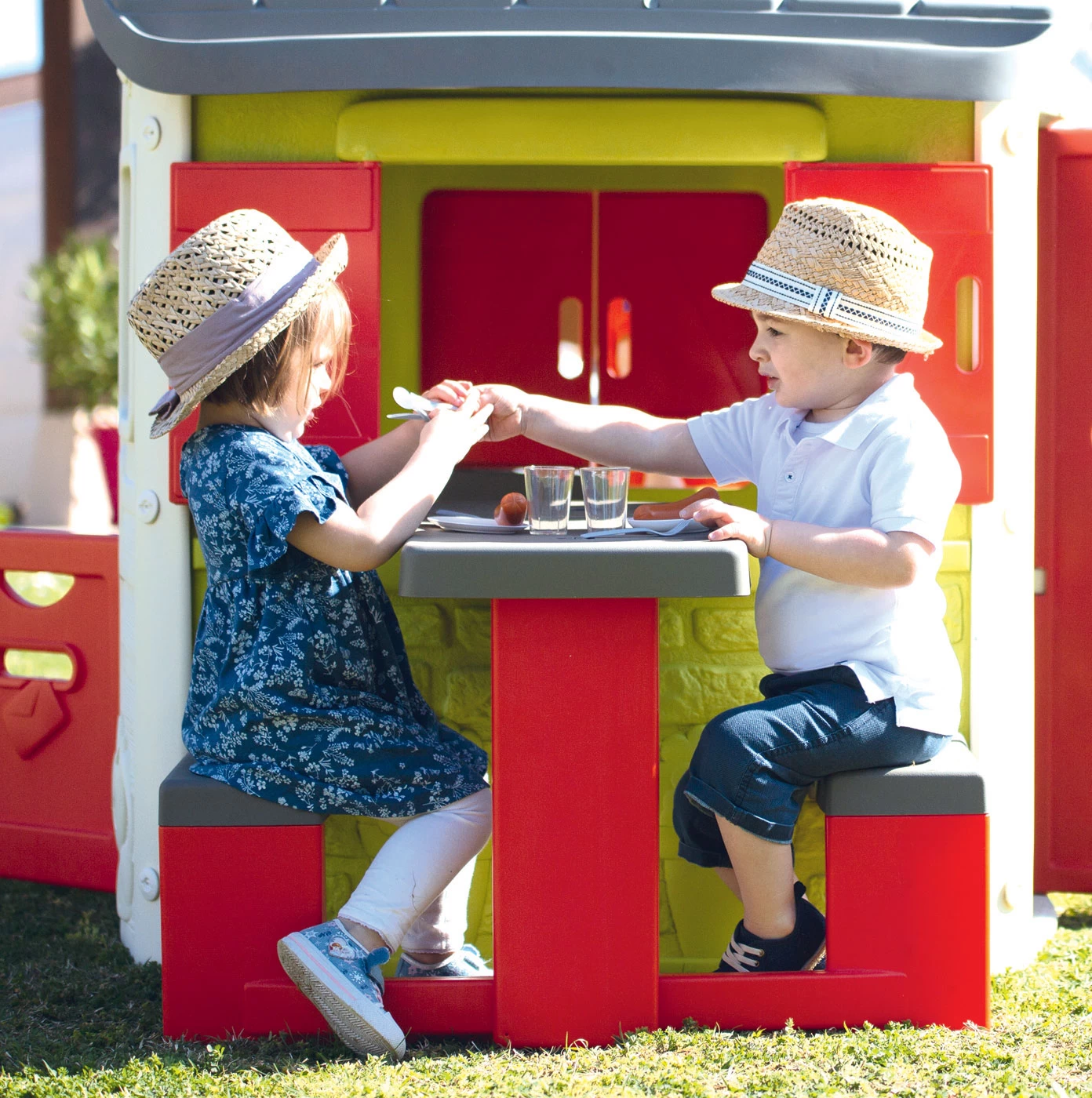 Spielhaus Pretty Sunny Flowers House Smoby Mit Glocke, Küche Und Garten Mit Stühlen