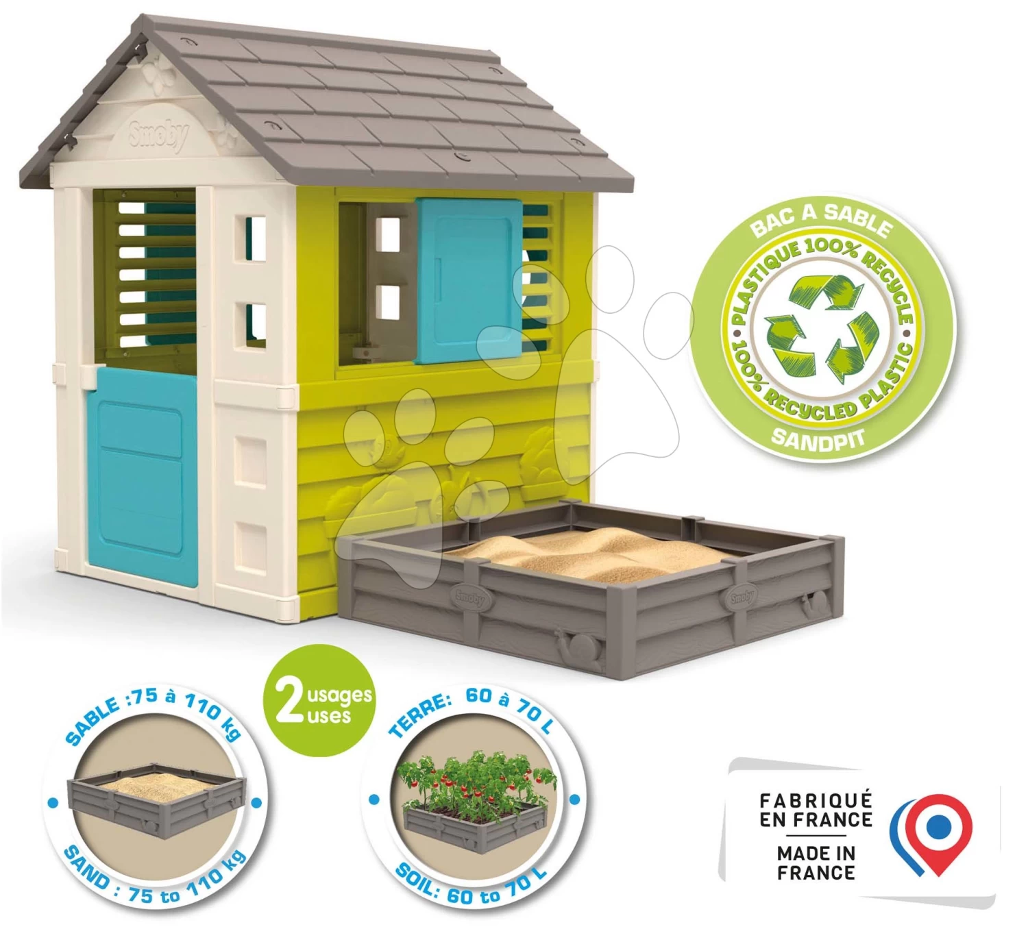 Häuschen Jolie Smoby Blaugrau Mit 3 Fenstern Und 2 Jalousien Mit UV-Filter Ab 2 Jahren